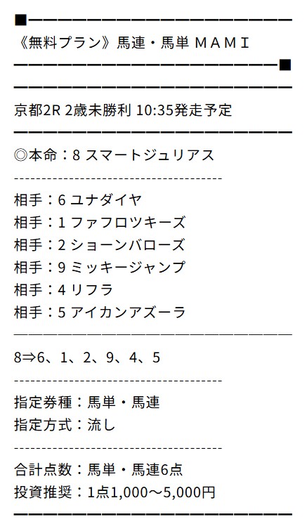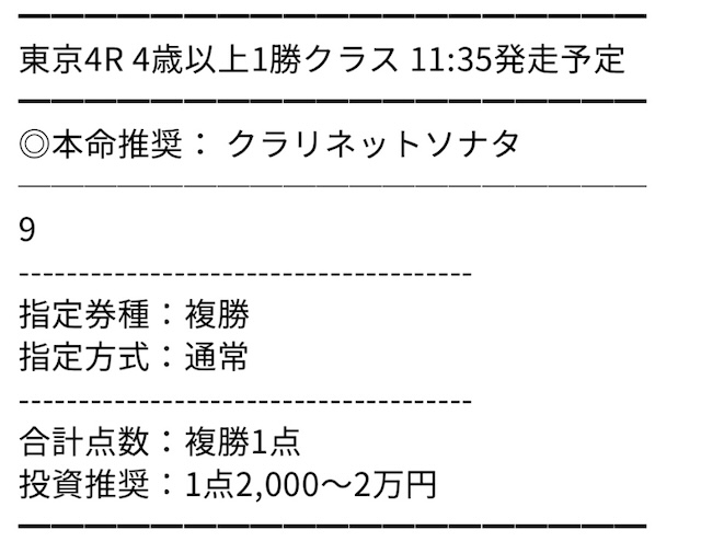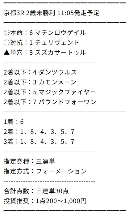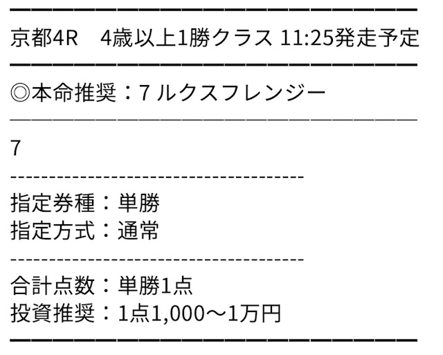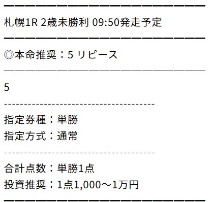 | 戦績 | 1戦1勝0敗 | 的中率 | 100% |