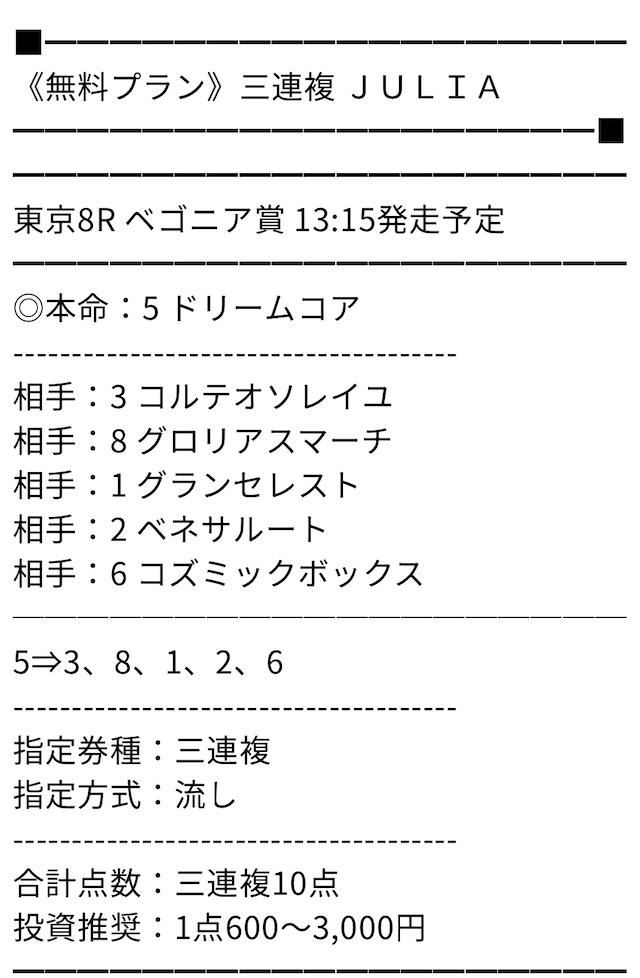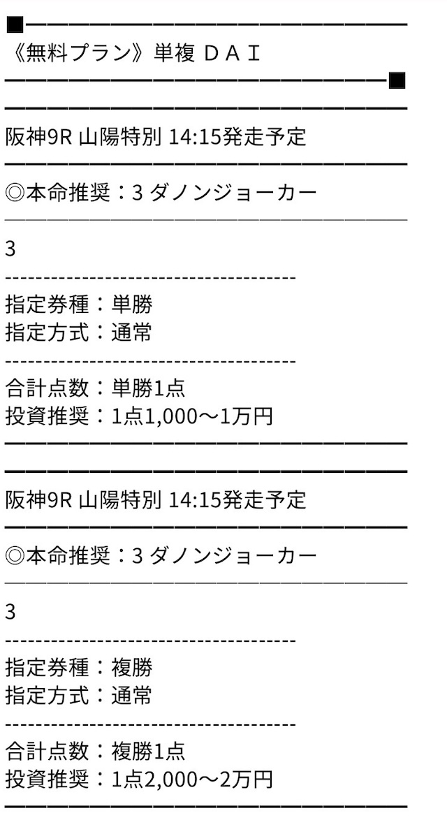 無料予想と有料予想を併用すれば、資金集めだけでなく有料予想で外れた時のリスクヘッジにもなります。