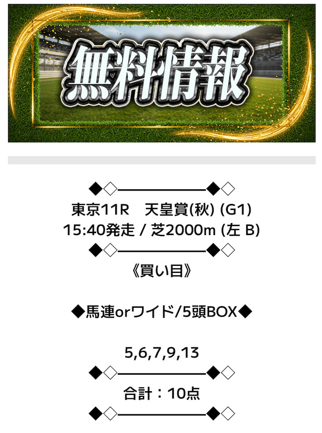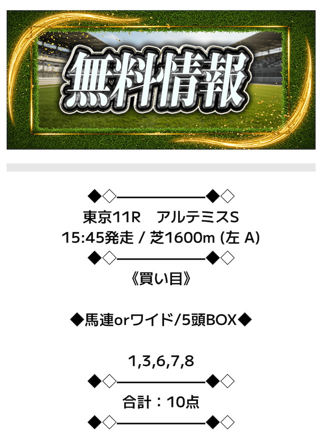 無料予想と有料予想に分けているので、ご自身のニーズに合わせてご覧ください。
