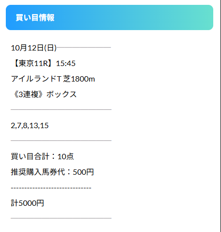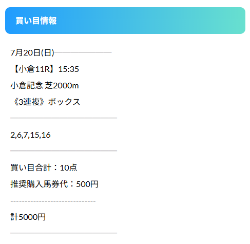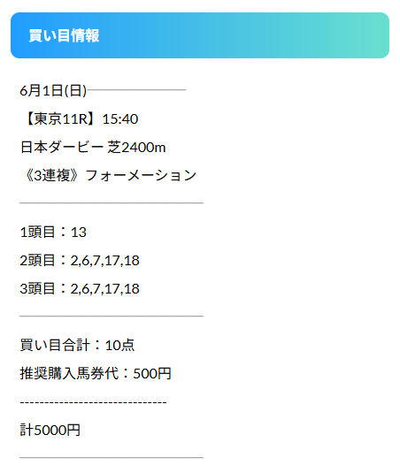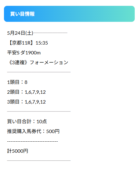 そんな無料予想はどのような券種や投資金額でいつ頃に公開されているのでしょうか。
