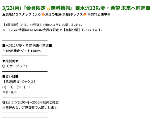 以上が、プレミアムの予想が当たるという口コミ。