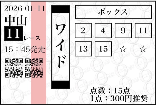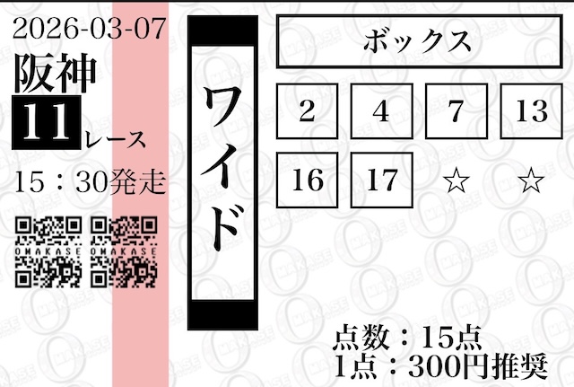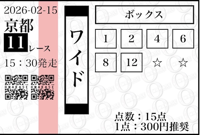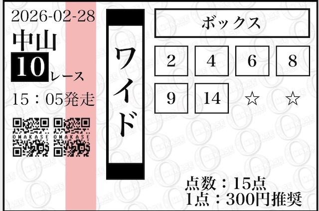 OMAKASEの無料予想はワイドを軸に提供されます。