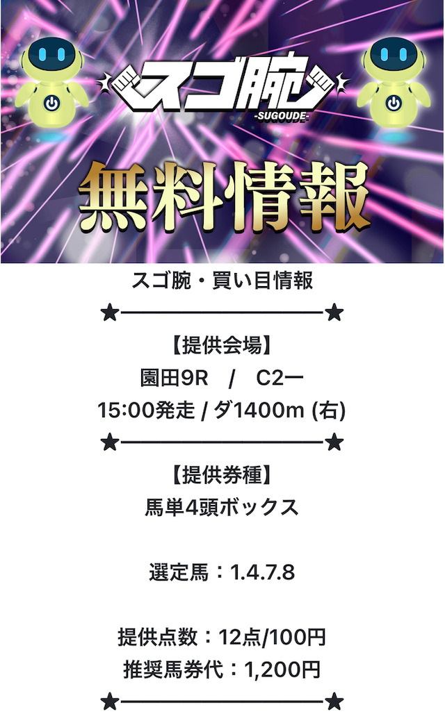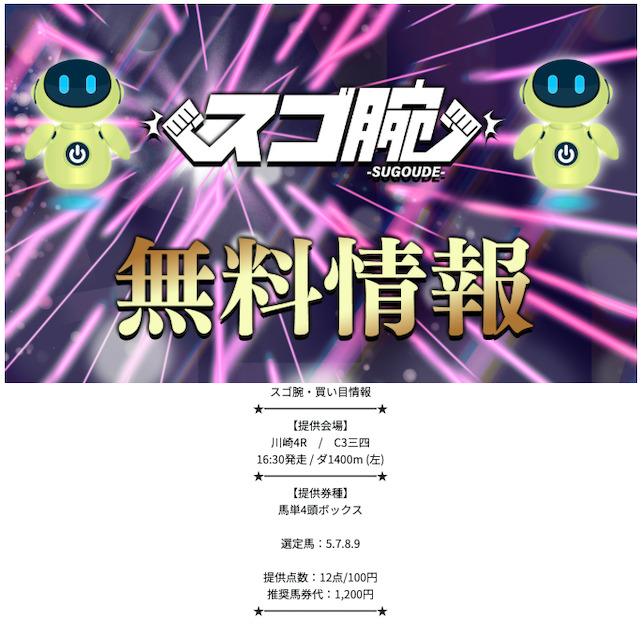 スゴ腕は、無料予想と有料予想共に、今が絶頂期。