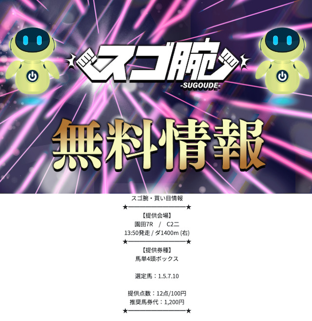 今回ご紹介するのは「スゴ腕」という競馬予想サイト。