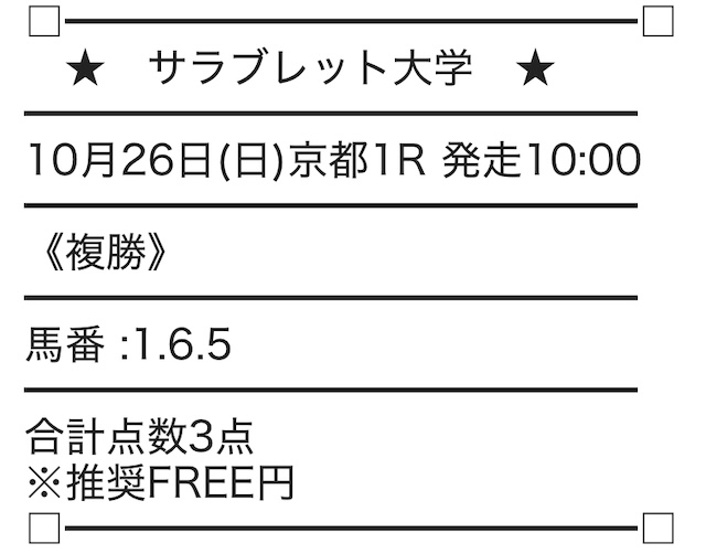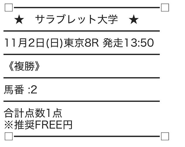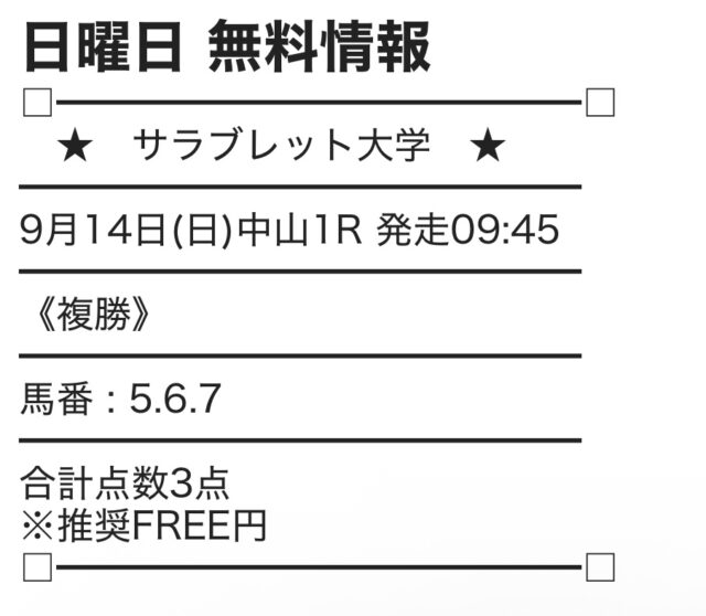 そんな無料予想はどのような券種や投資金額でいつ頃に公開されているのでしょうか。