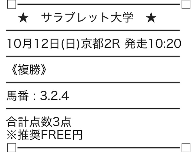 サラブレッド大学が公開している無料予想の詳細をご覧ください。