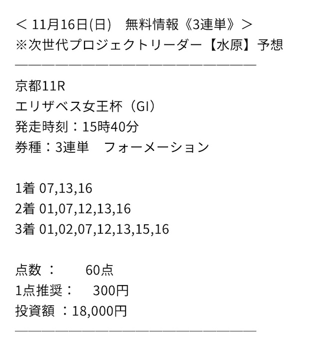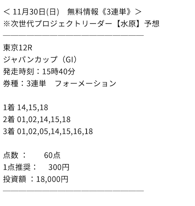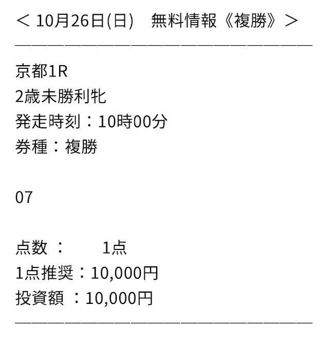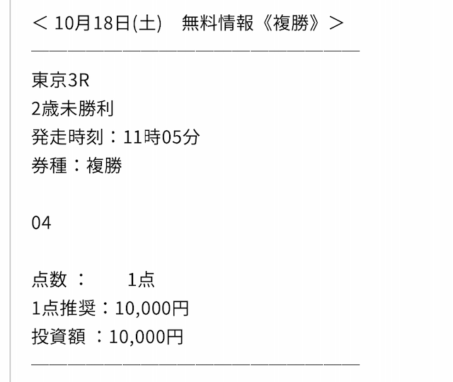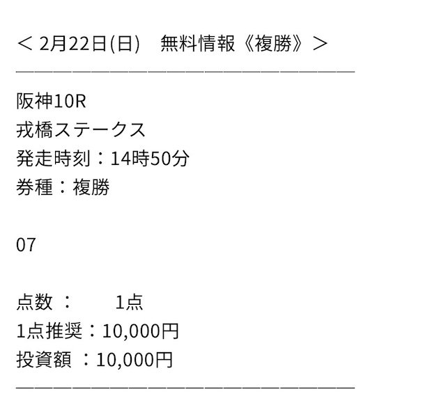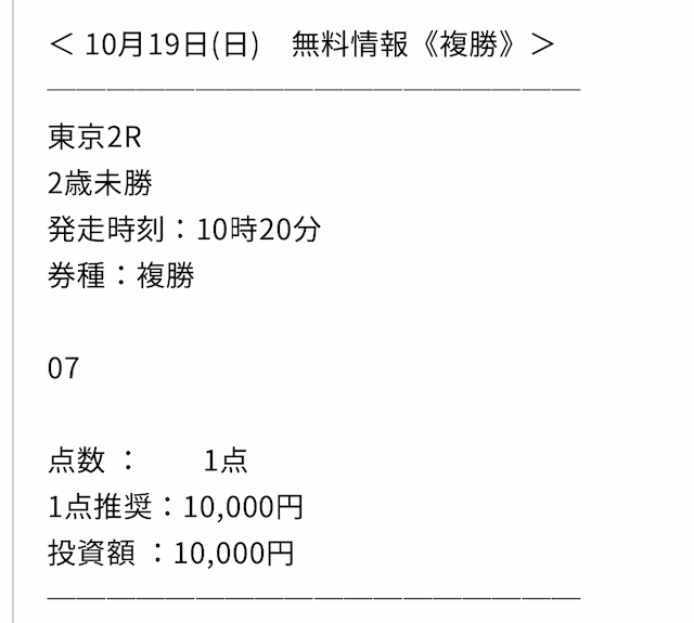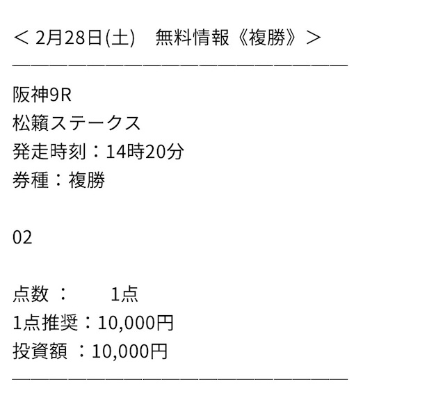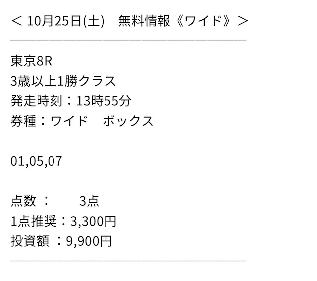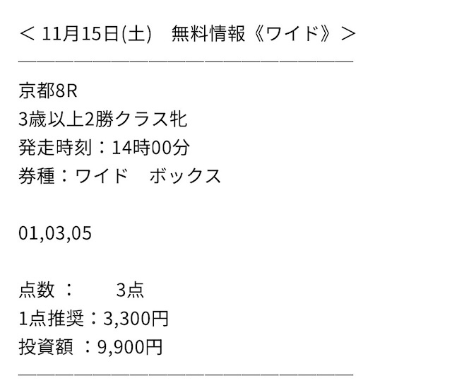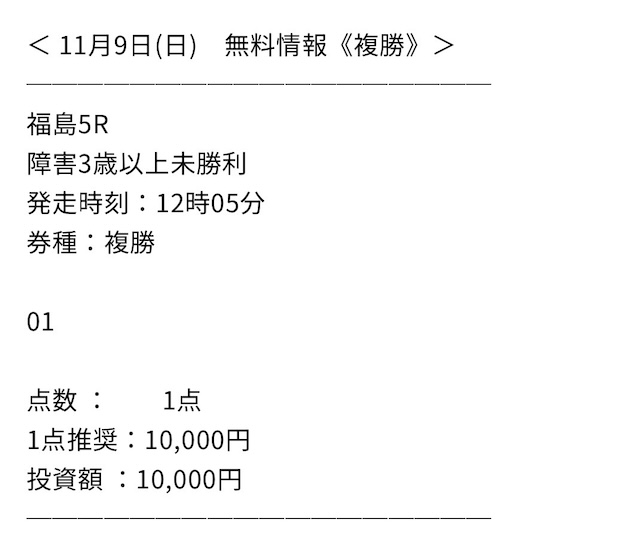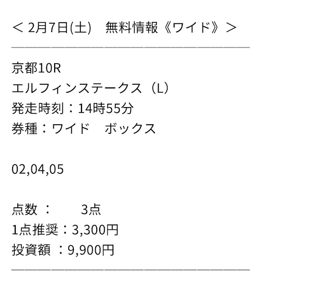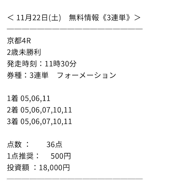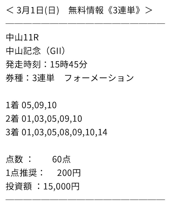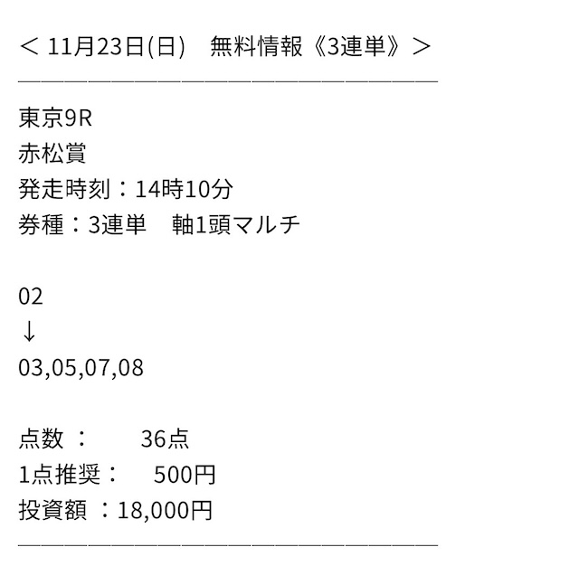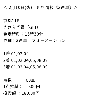 そんな無料予想はどのような券種や投資金額でいつ頃に公開されているのでしょうか。