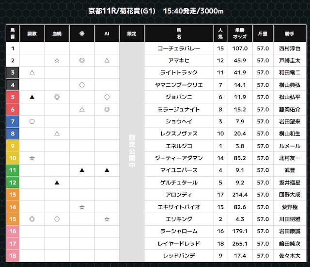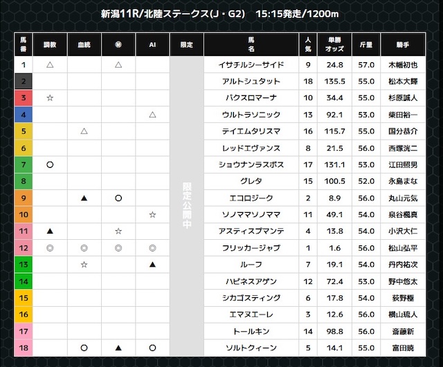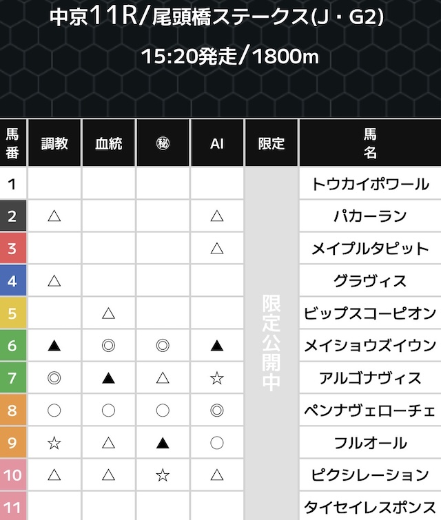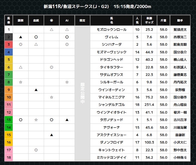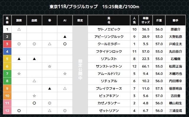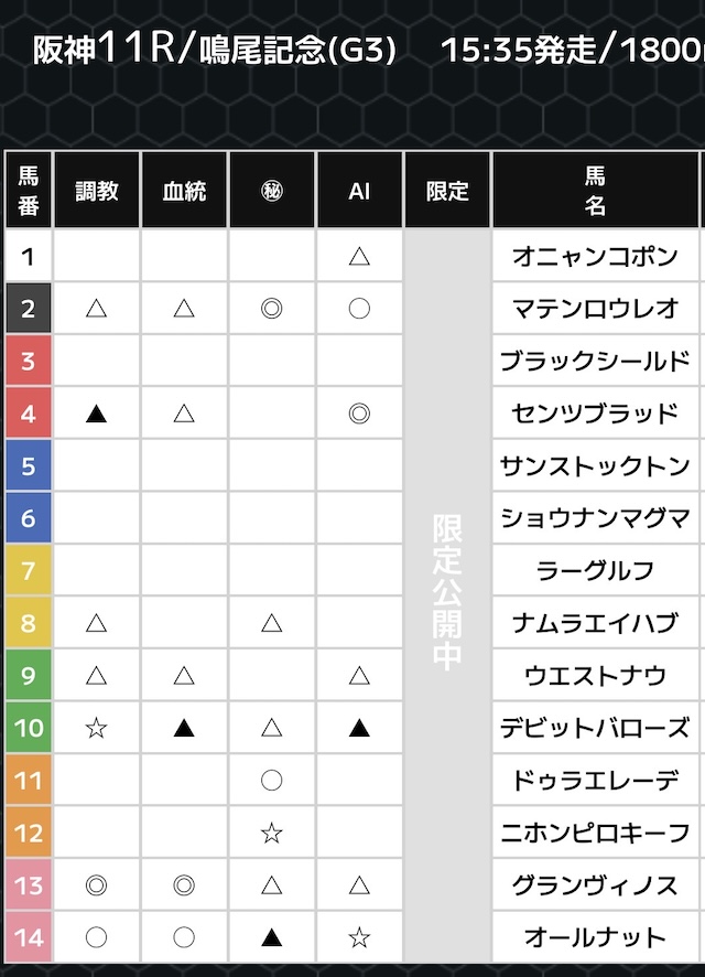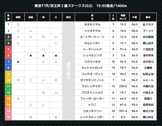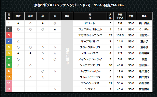| 提供曜日 | 中央競馬:レース前日21時頃 地方競馬:レース当日13時頃 |