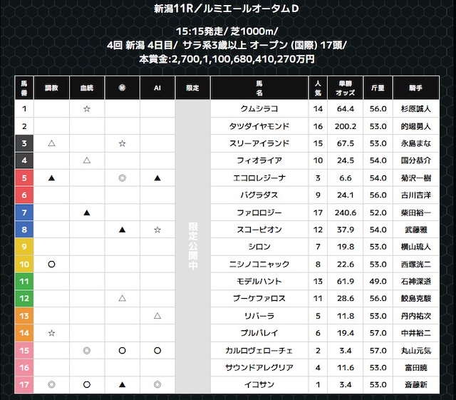 無料予想と有料予想に分けているので、ご自身のニーズに合わせてご覧ください。