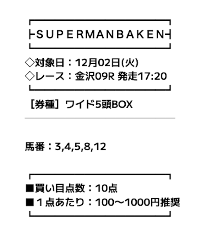 スーパーマンバケンの予想結果の詳細をご紹介