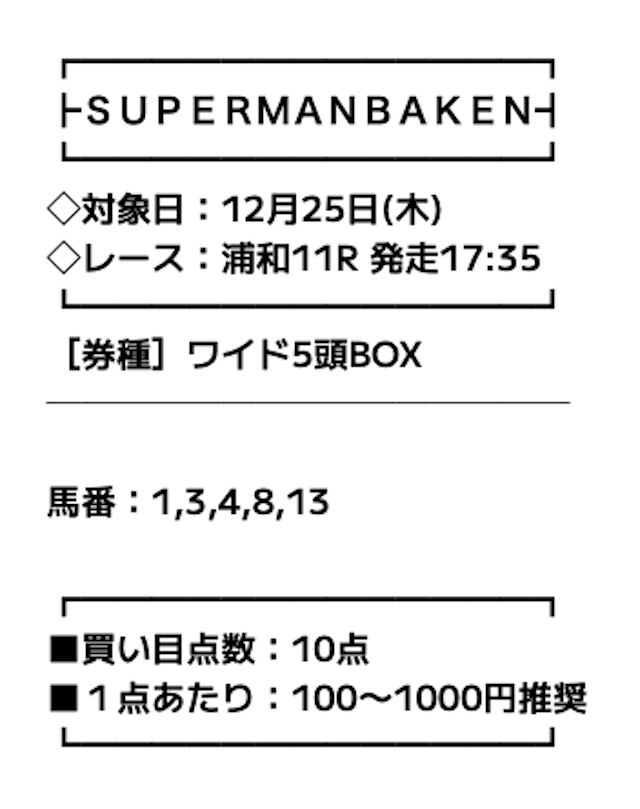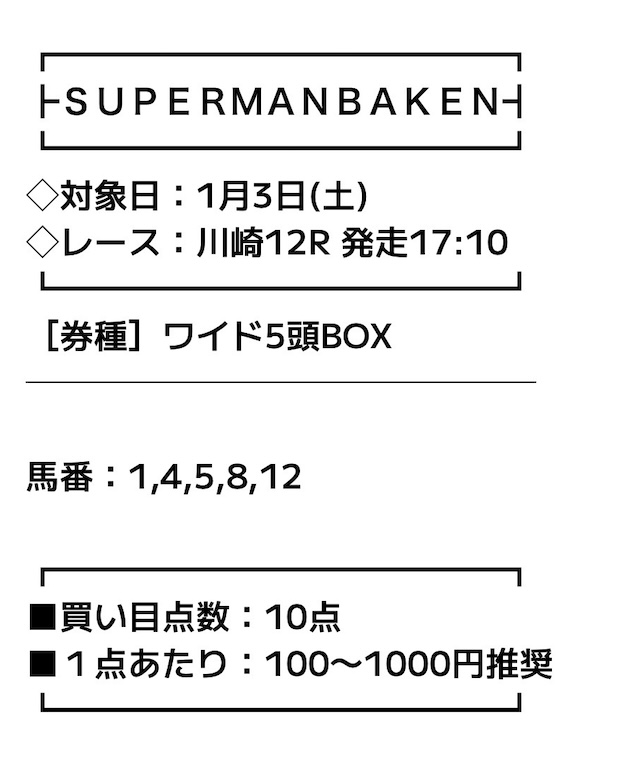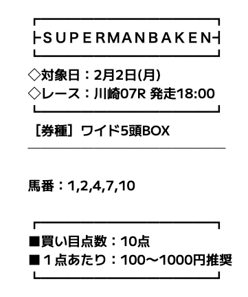 そこで、本記事ではスーパーマンバケンの予想に参加し、無料予想・有料予想の検証を実施!