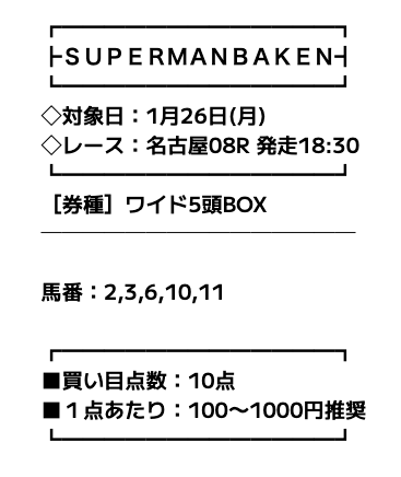 今回、うまネタでの検証を通じて予想の実力があることを示したスーパーマンバケン。