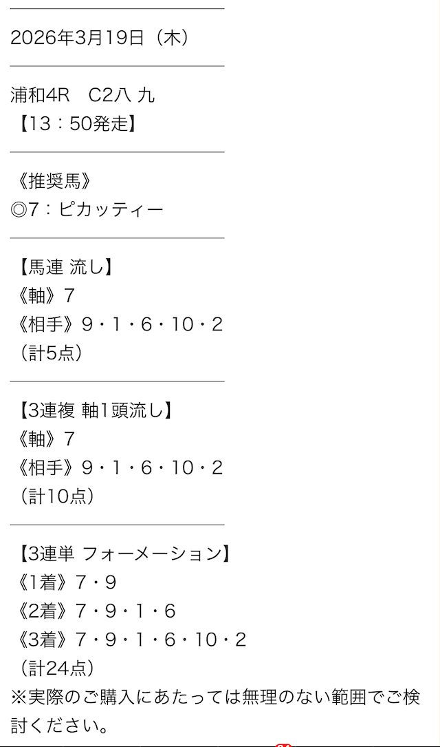 予想スタイルは少額投資で高配当を狙うスタイルなので、軍資金が少なくても勝負はできるでしょう。