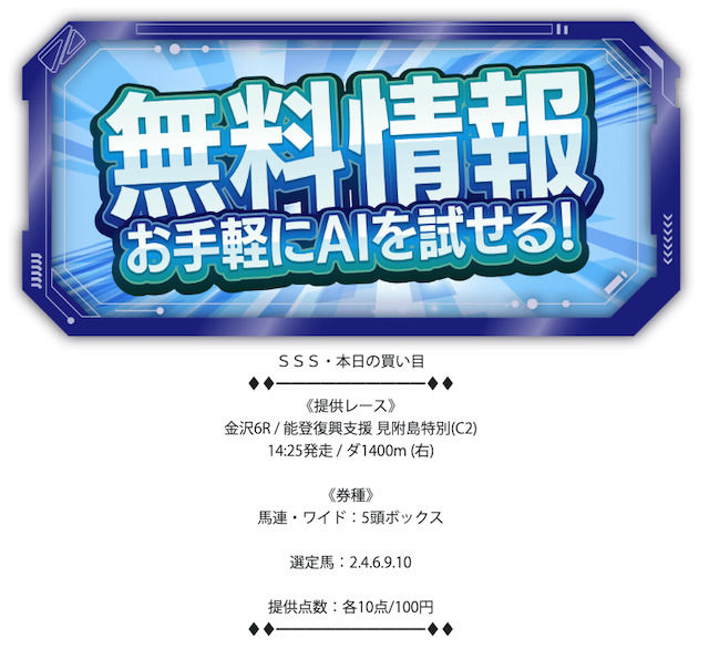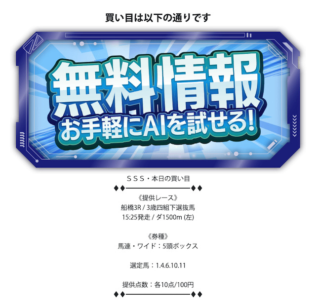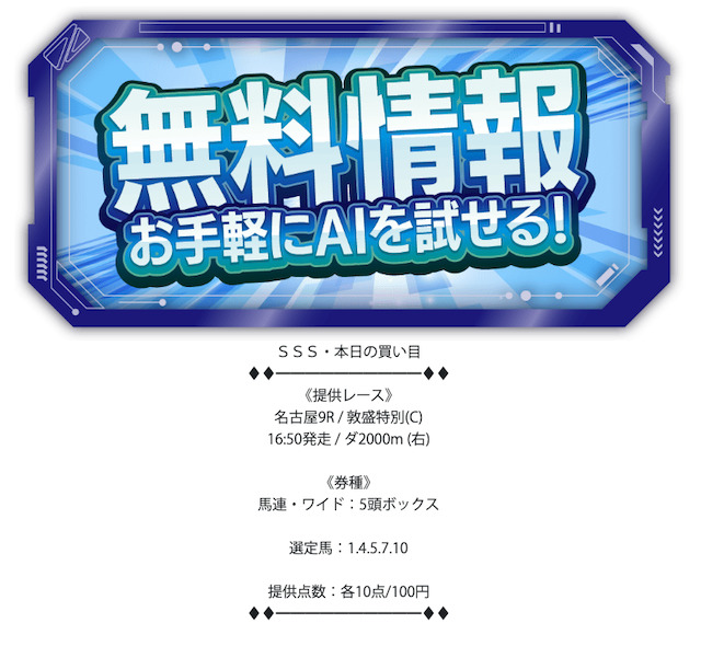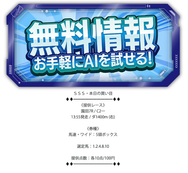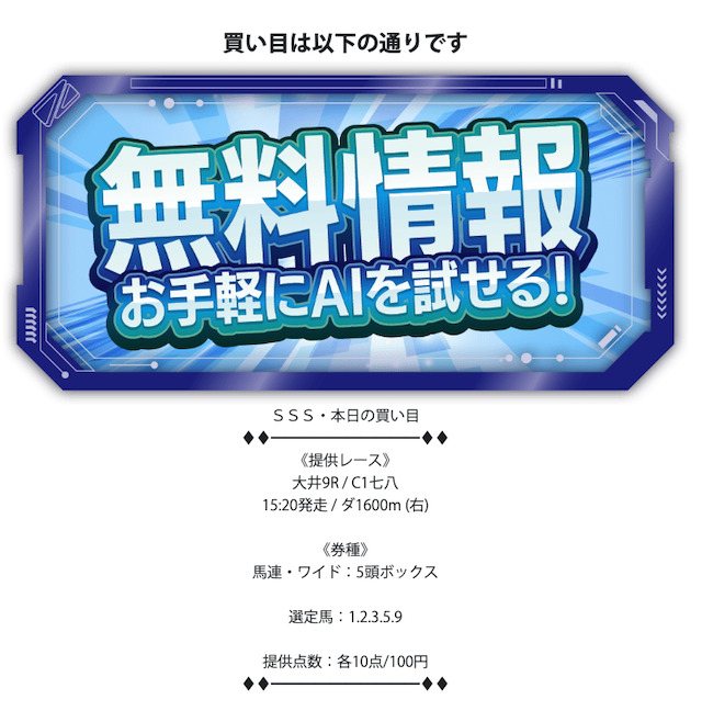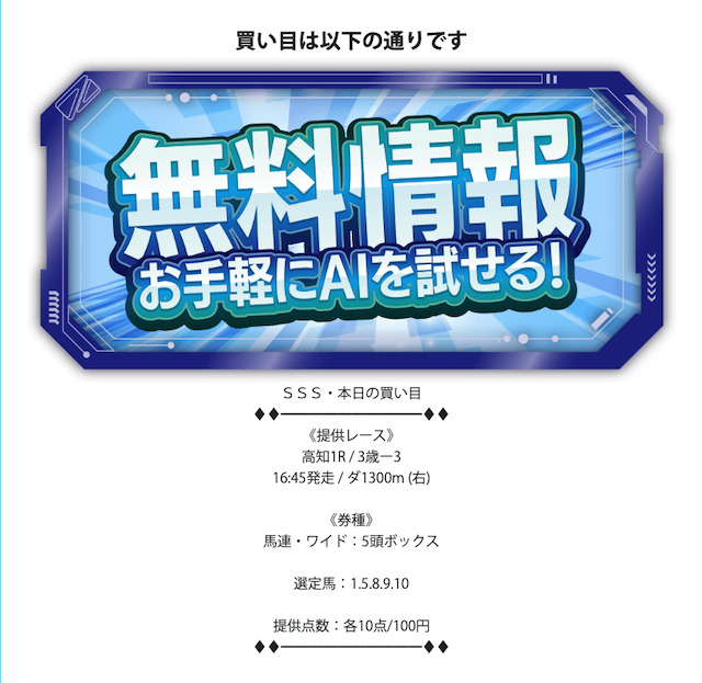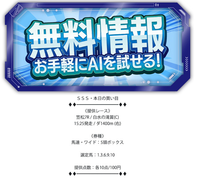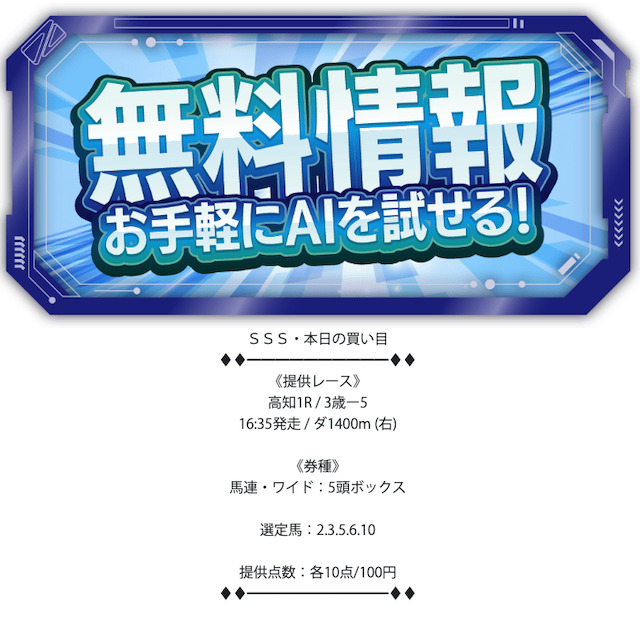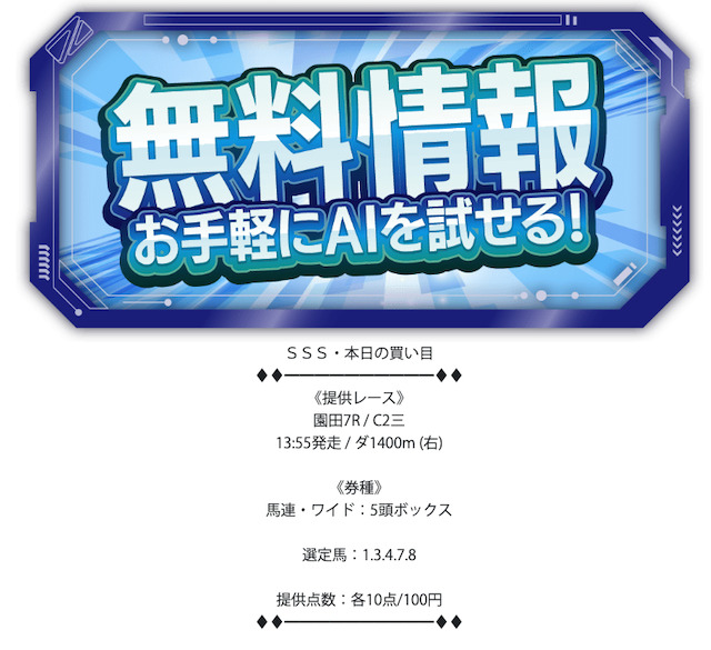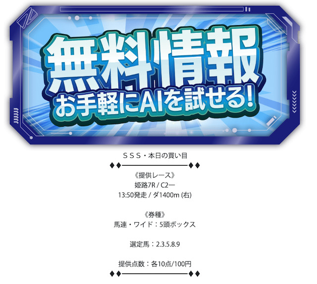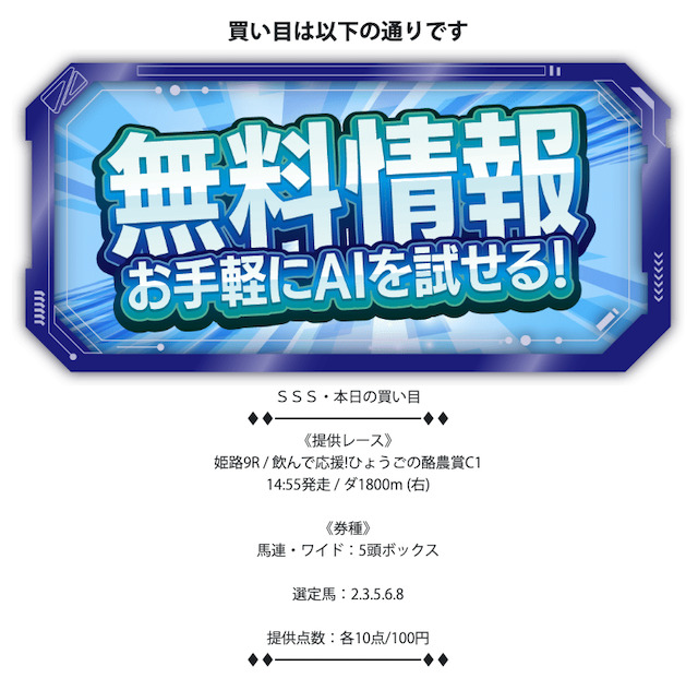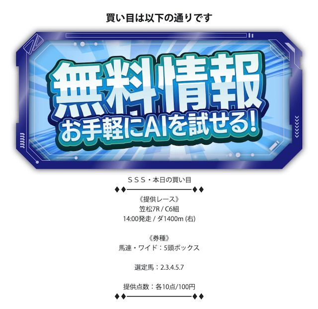 - 無料予想が1日1レースのみ