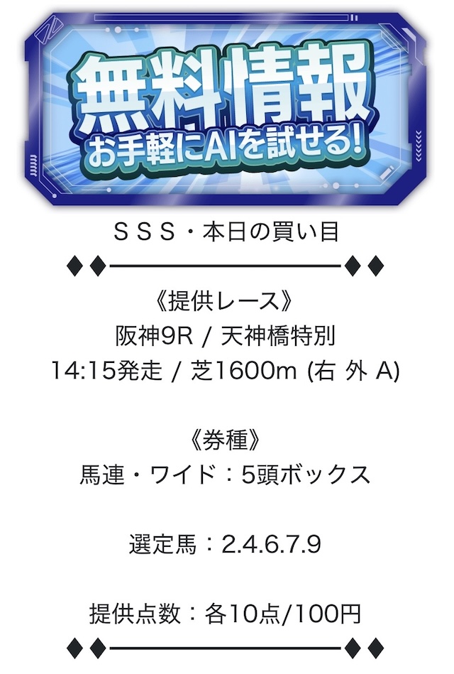 まずは、トリプルSの無料予想の詳細をご覧下さい。