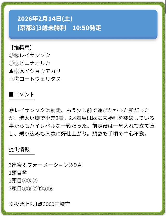 有料予想の戦績