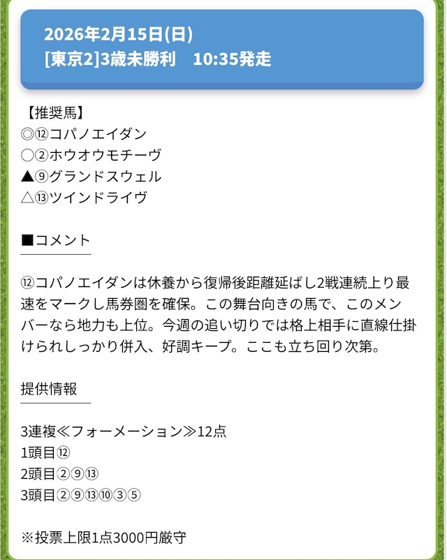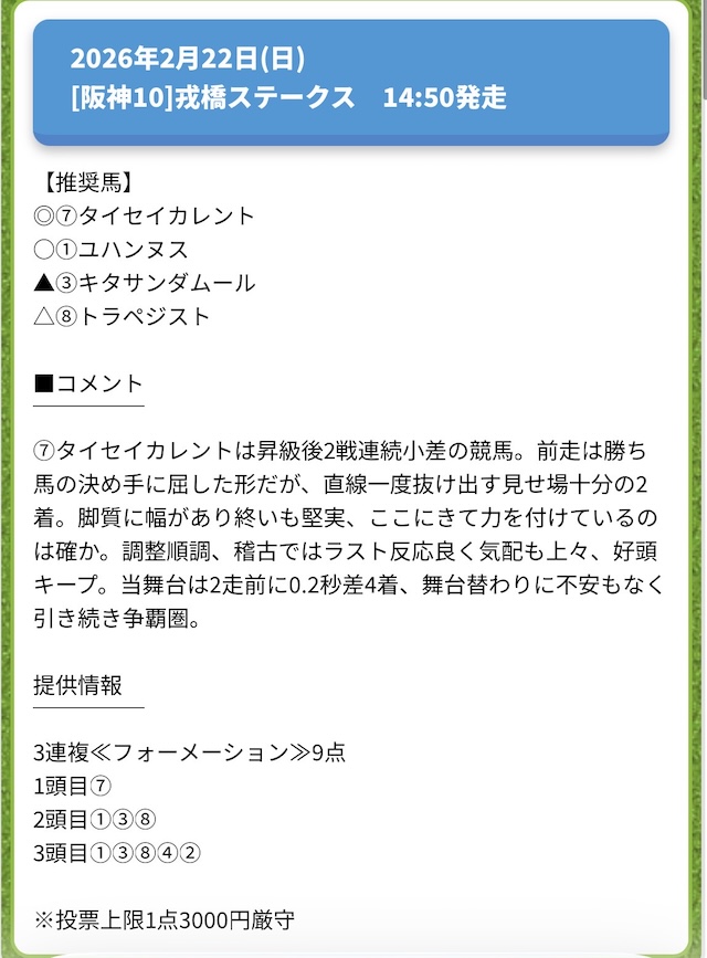 ターフビジョンの有料情報「3点攻略Labo」に参加