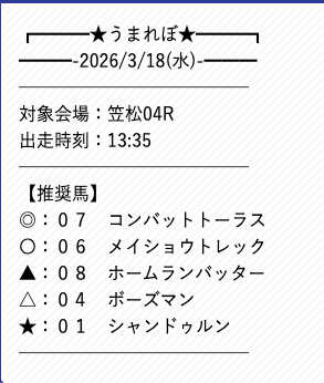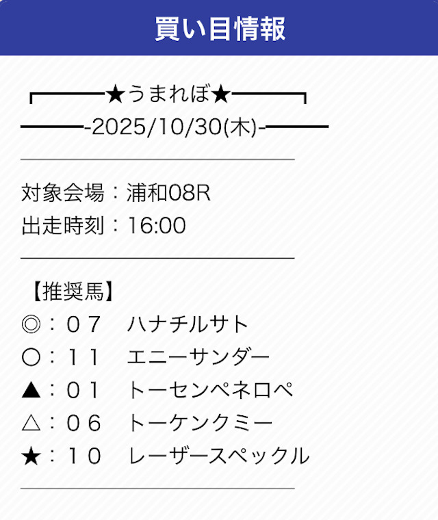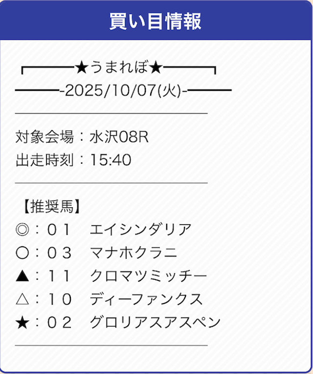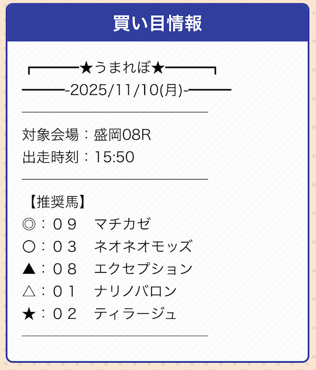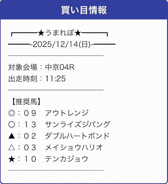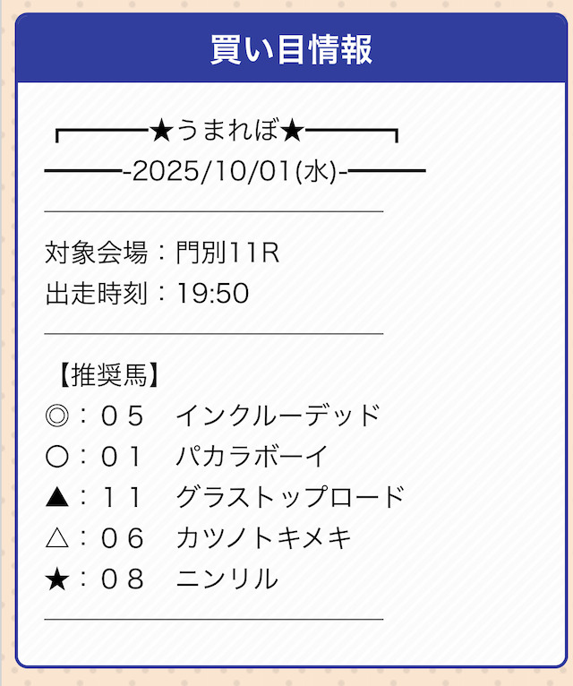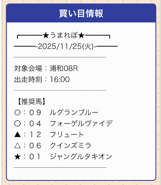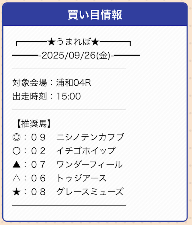 うまれぼは推奨の券種と投資金額が設定されていません。