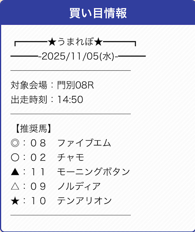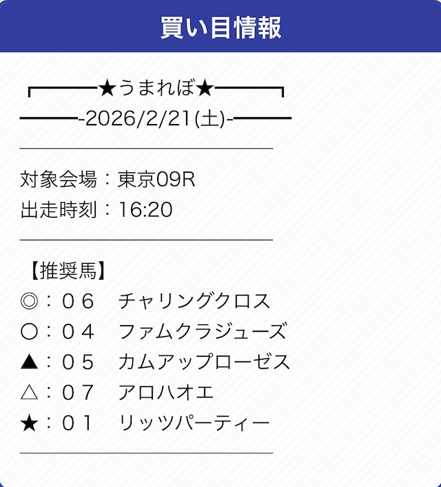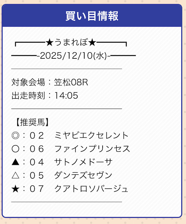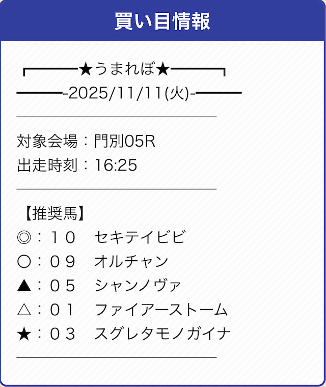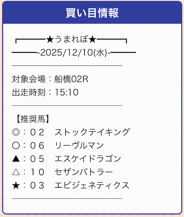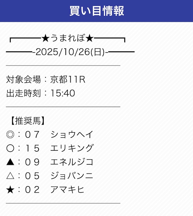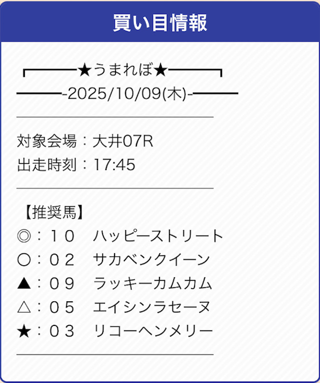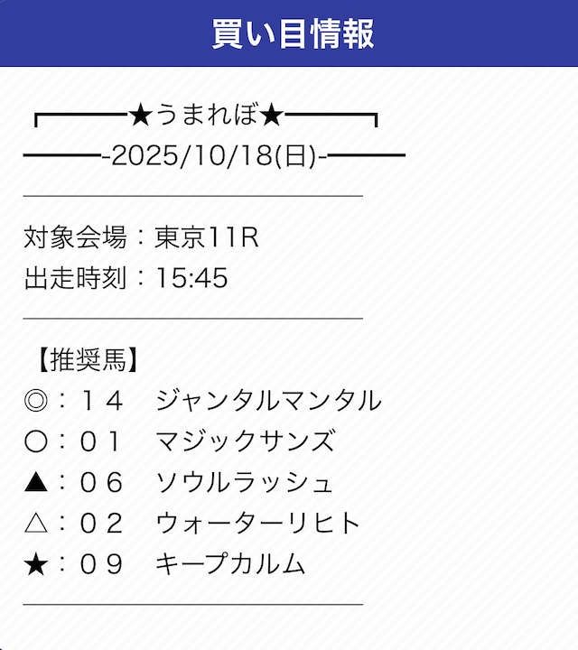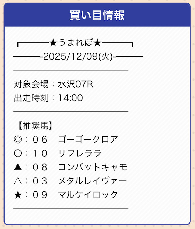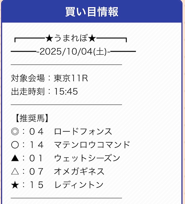 | 戦績 | 5戦5勝0敗 | 的中率 | 100% |