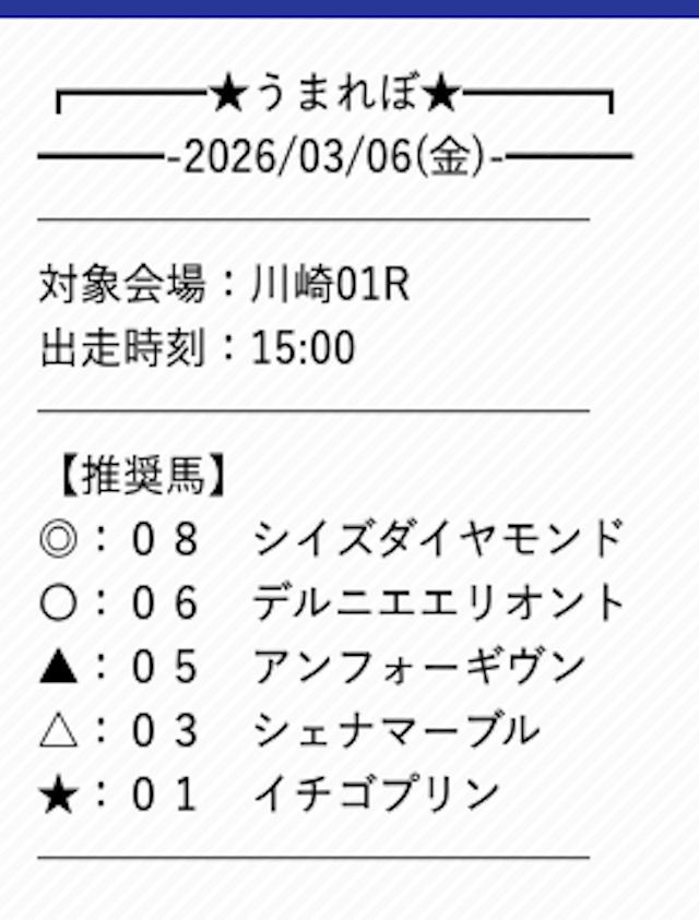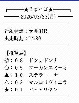 うまれぼの無料予想は、中央と地方どちらの予想も公開しています。