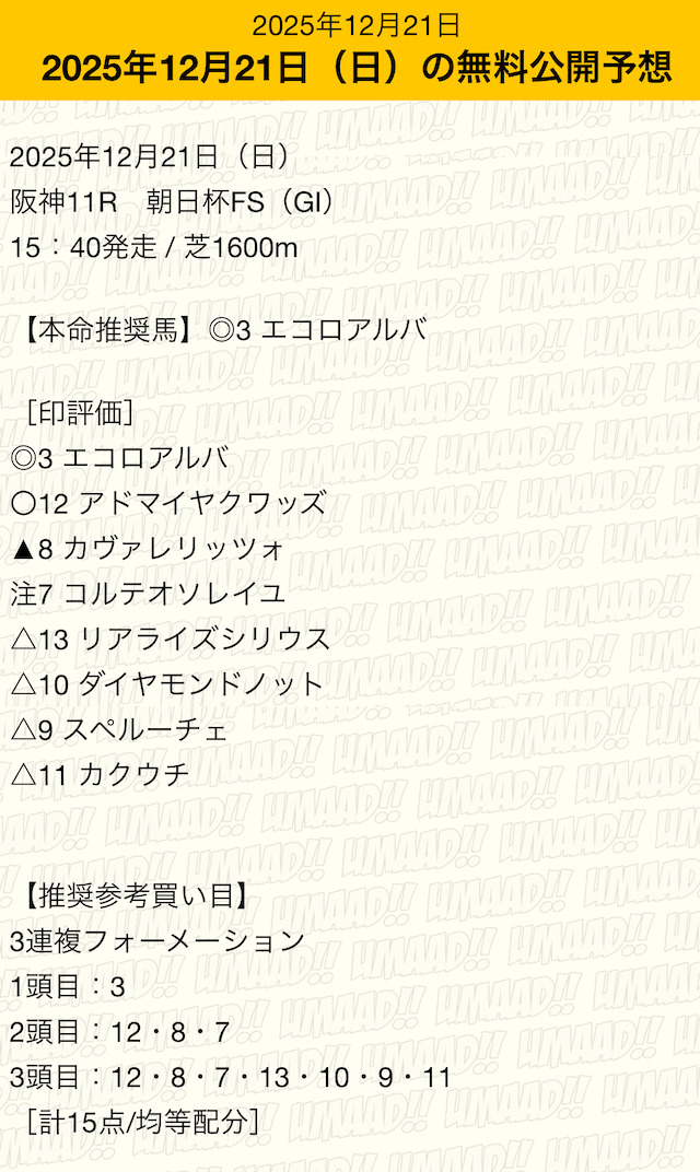 もはや無料予想ではなく有料予想と言っても過言ではないほどのレベルです。