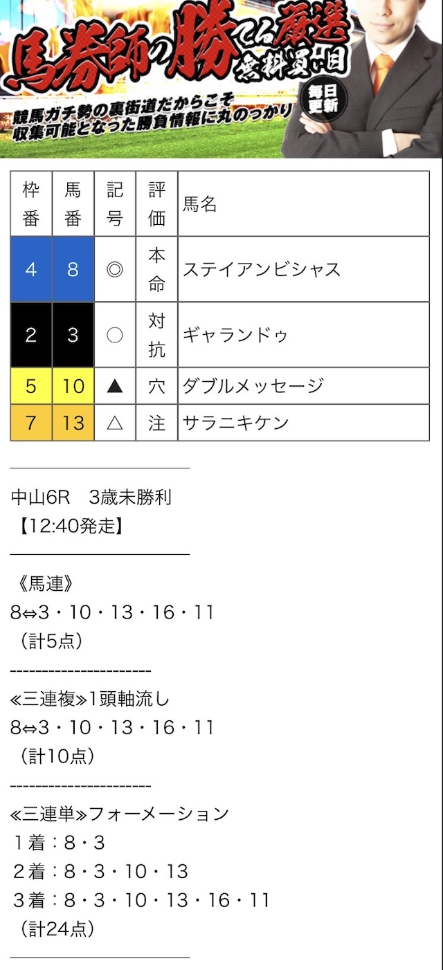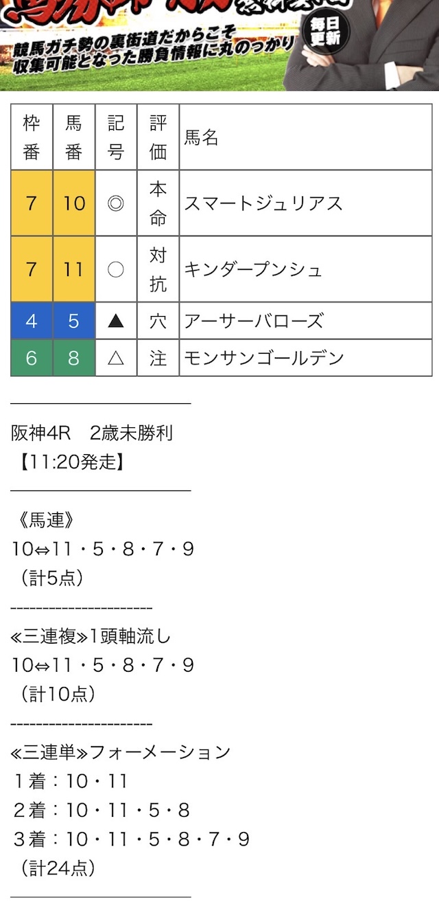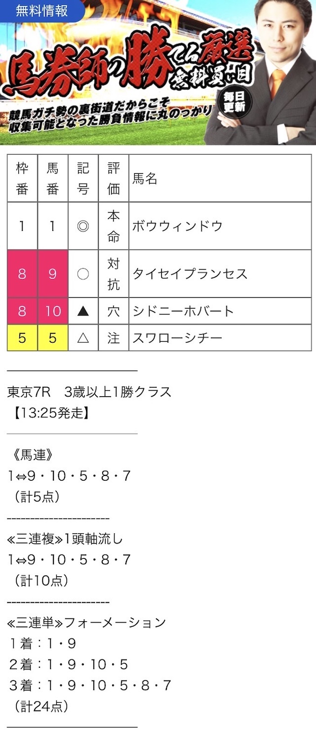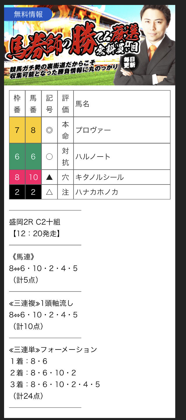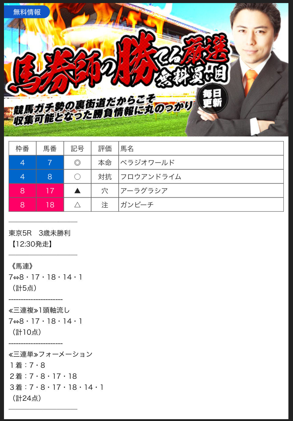 競馬裏街道の無料予想における詳細は以下の通りです。