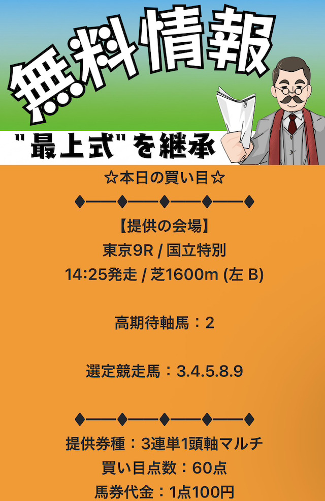 最上式勝馬投票券の無料予想が圧倒的な支持を集めています。