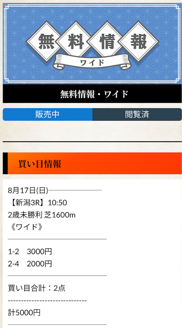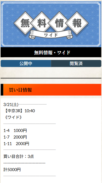 無料予想ではワイドと3連複を用いているため、他の券種には対応していません。